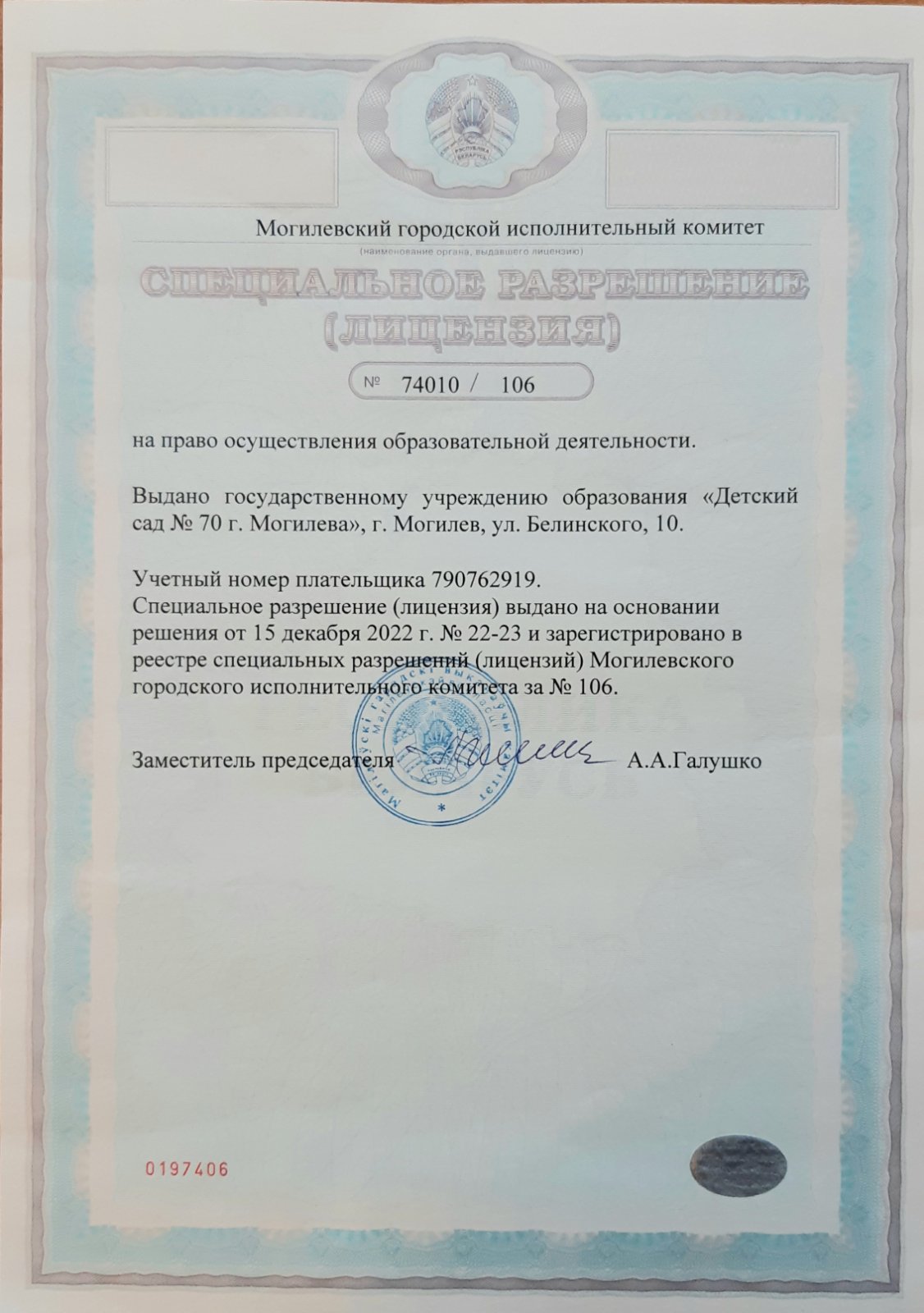 Предметом деятельности государственного учреждения образования «Детский сад № 70 г. Могилева» является обучение и воспитание детей раннего и дошкольного возраста.