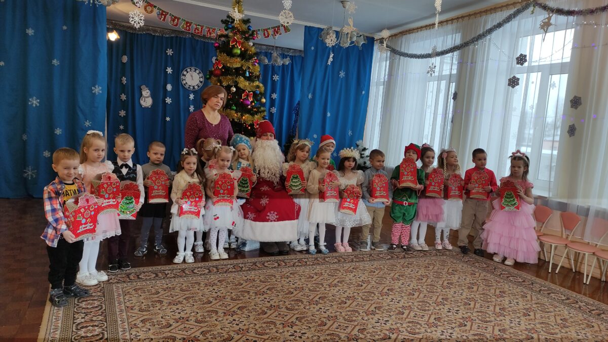 С 23 по 30 декабря в детском саду были проведены новогодние утренники во всех возрастных группах. Сказочно украшенный музыкальный зал, сверкающие огоньки, нарядная ёлка, увлекательные танцы и хороводы, стихи, загадки, весёлые игры подарили ребятам и их родителям праздничное новогоднее настроение. Радостные эмоции переполняли всех присутствующих в зале – и детей, и гостей. Ребята были в восторге от неожиданных новогодних сюрпризов и встреч со сказочными героями.