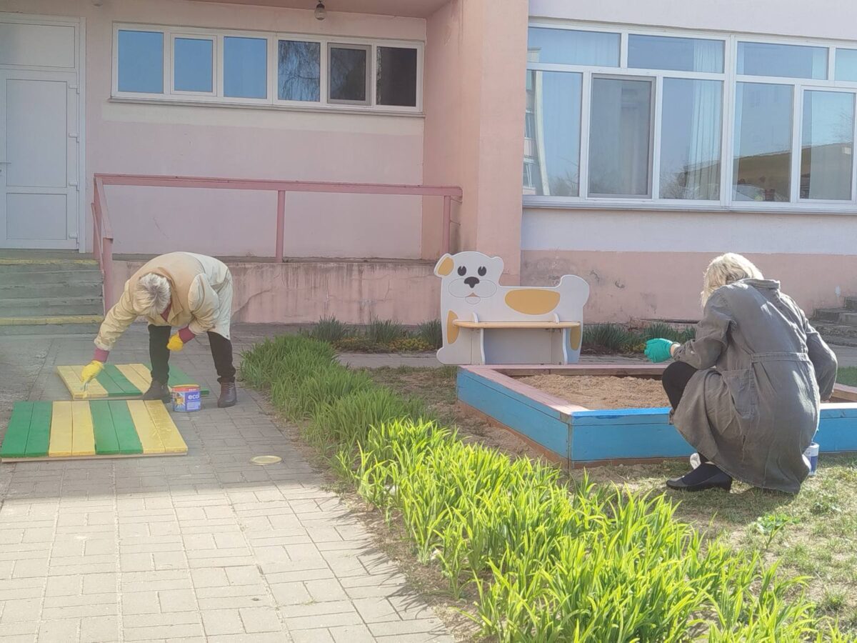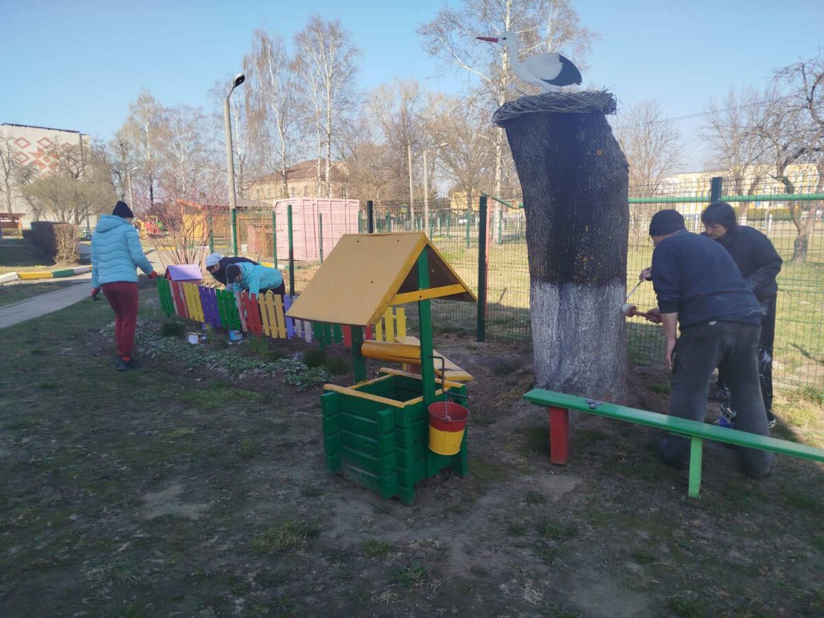 В ходе работ была проведена сезонная побелка деревьев, игровое и спортивное оборудование засияло яркими красками, а для отдыха детей установлены новые удобные скамейки. Особое внимание уделили эстетике: обновили наш этнографический уголок «Белорусское подворье». Мы продуктивно поработали, чтобы прогулки наших воспитанников стали еще приятнее и безопаснее.