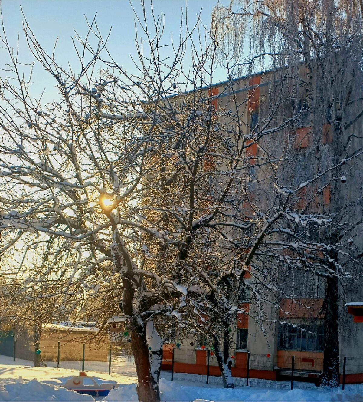 Хотя новогодние праздники уже закончились, в нашем учреждении дошкольного образования все еще царит ощущение волшебства. Воспитанники из группы «Старшая «Б» погрузились в мир чудес, создав красочные льдинки для украшения любимой яблони на своем игровом участке.